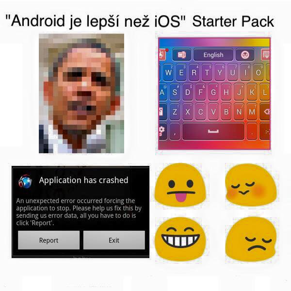Pomalé načítání obrázků a stránek, sekající se klávesnice s šílenými motivy, padající aplikace a smajlíci od „profesionálních grafiků ze školky.“ To je Android Starter Pack.