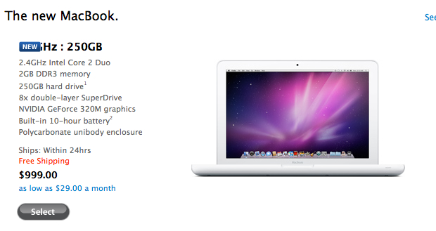 Apple dnes skutečne inovoval bilý MacBook. Cena zůstává 999 dolarů, ovšem změnila se jeho konfigurace, která nyní odpovídá konfiguraci nejslabšího MacBook Pro, od něhož se nyní liší pouze provedením a chybějícím IR portem ( u MacBook White) . Navíc Apple poprvé v novodobé historii inovoval bez vypnutí Apple Store. Zvláštní také je, že na Apple Store není MacBook White v nových produktech!