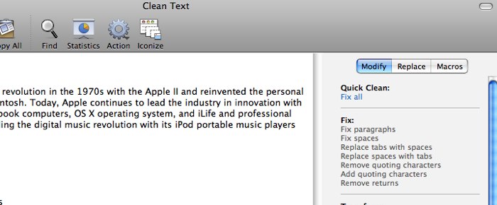 Clean Text vymaže z jakéhokoli textu v jakémkoli fontu všechny atributy. Pokud zkopírujete text z wikipedie, tedy uděláte referát do školy, již nemusíte ručně mazat všechny odkazy a další nesmysli, vše se smaže samo a zbude tak pouze samotný text.