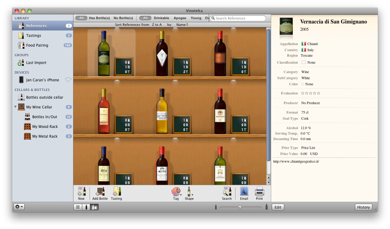 Dovolím si tvrdiť že Vinoteka je jednou z najkrajších aplikácií určených pre systém MAC OS X a to je u takto úzko zameranej aplikácie veľmi vzácne.
