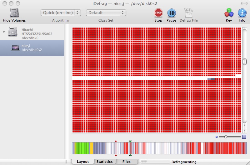 iDefrag 2 je velice chytrá aplikace, která stejně jako Mac OS X podporuje takzvané Hot Zone, což je nejrychlejší zóna na disku, kam automaticky přesune nejvíce používané soubory. Pokud jste pokročilý uživatel a dokážete sami posoudit co je pro vás výhodné, můžete si ručně uspořádat uložení souborů na disku tak jak chcete. Obrovská výhoda, kterou konkurenční software nenabízí je plná podpora defragmentace Time Machine! Samozřejmě si poradí také s HFS+. Také nepotřebujete žádné Boot CD abyste mohli aplikaci spustit při restartu disku. Stačí ji spustit a aplikace sama restartuje disk a spustí iDefrag 2, před načtením Mac OS X! Můžete si také sami vybrat soubory, které chcete defragmentovat. Pochopitelně je zde podpora pro externí disky. Během defragmentace máte naprotý přehled nad tím, jaké soubory, kde a kam se přesunuly, kolik pracent souborů bylo potřeba přesunout a v jakém stavu je váš disk.