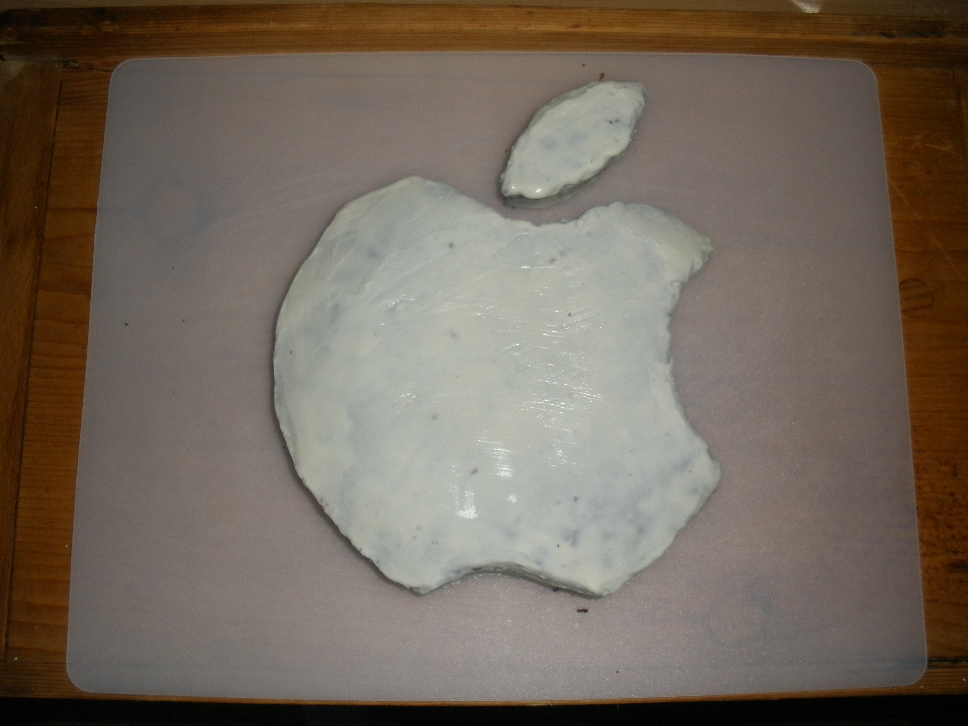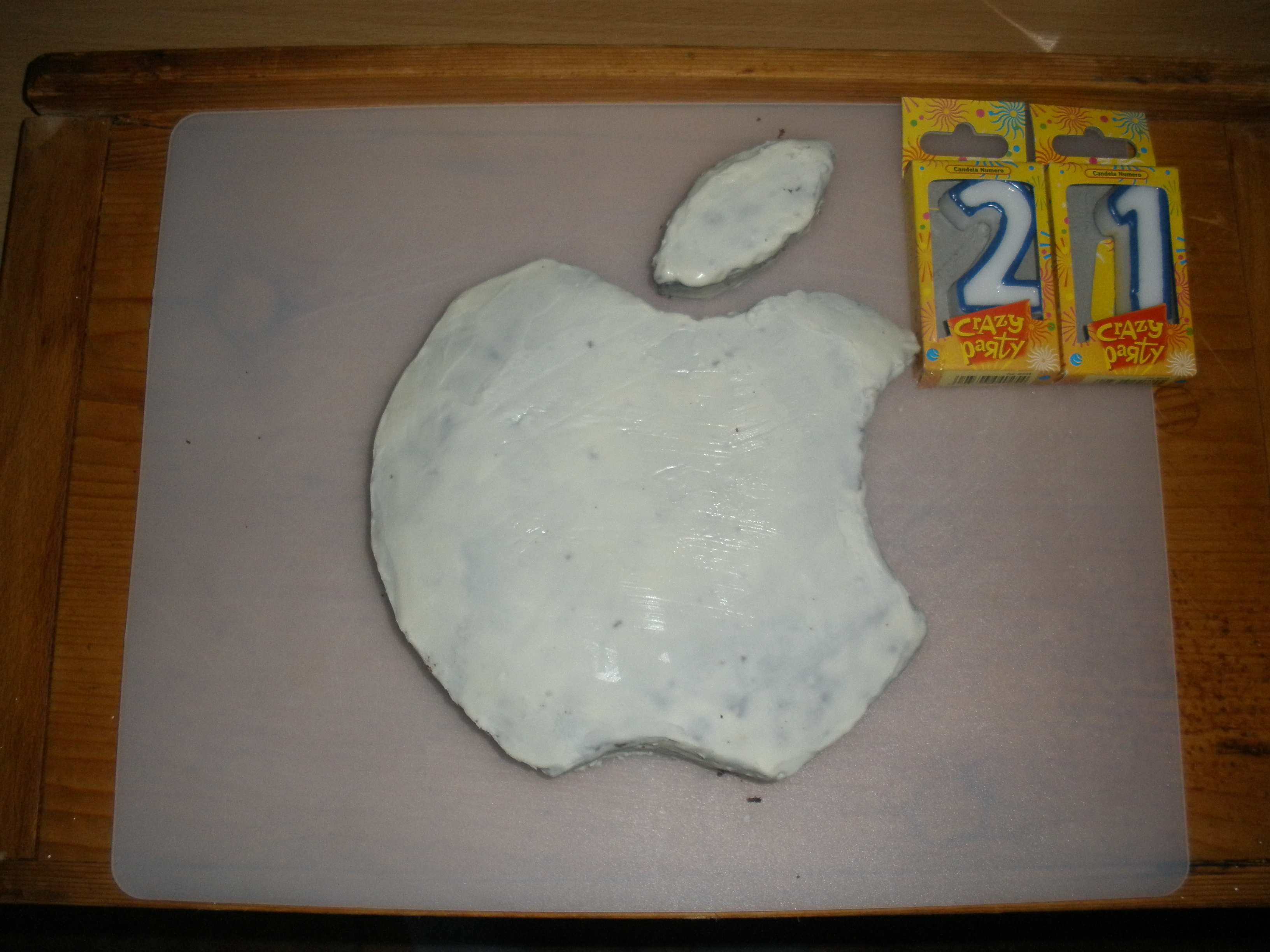 Smícháme máslo s krupicovým cukrem, přidáme rozpuštěnou vychladlou čokoládu a opatrně vmícháme žloutky. Přidáme mouku(v ní je prášek do pečiva) a sníh (v něm je moučkovýcukr) Vzniklou hmotu nalijeme do vymazané dortové formy a dáme péct na cca 170°C  a 45min (horkovzdušná trouba). Když je dort dopečený necháme asi 15min odležet a potom ho otočíme dnem vzhůru (dort bude potom nahoře rovný, bez vypuklin) a necháme vychladnout. Já jsem si obrys jablka udělala podle oka, ale lze si na internetu stáhnout, zvětšit a vytisknout obrázek a pak ho na dortu obříznout. Stopku jsem udělala z vykrojeného „výkusu“ jablka. Upečený a vychladlý korpus po ploše rozkrojíme (nejlépe na tři části) a potřeme rozehřátým džemem, který necháme trochu vsáknout. Části dáme k sobě a potřeme čokoládovou polevou. Pro ty, kteří by si chtěli, místo polevy se dá použít bílý marcipán, který se dá koupit v cukrárnách. Stačí vyválet a podle jablka oříznout. Je to hezčí a „upravenější“, ale ne každému marcipán chutná :)