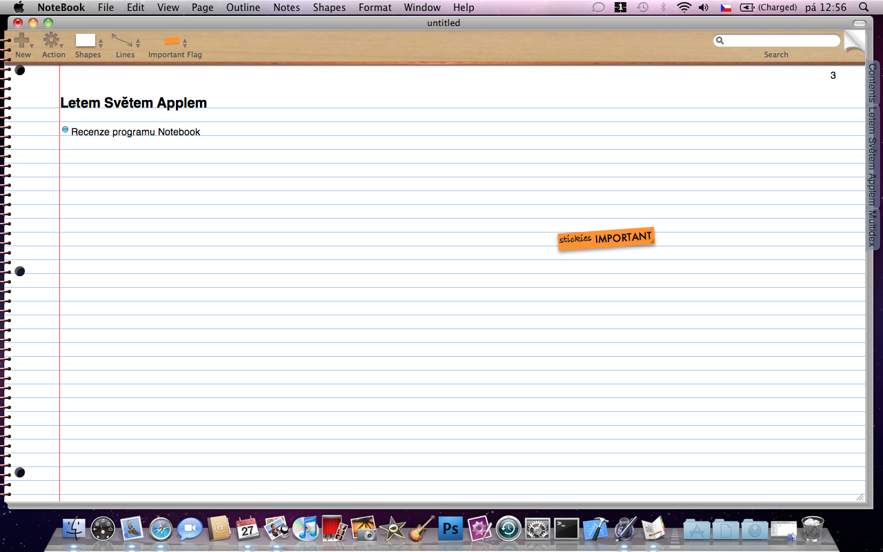 Notebook není jen jednoduchý “poznámkovník”. Tento software toho nabízí mnohem víc. Už jen váš první dojem, navozující pocit toho, že píšete do skutečného poznámkového bloku je velmi příjemný. S tímto programem můžete dělat cokoli. At’ sedíte ve škole a píšete si poznámky do všech předmětů, které pak rozdělíte na kapitoly, nebo sedíte v práci a řídíte nějaký svůj projekt. Notebook vám poskytne mnoho užitečných nástrojů a vychytávek, které vám vaši práci zpříjemní. Samozřejmostí je jednoduché přidávání obrázků, zvukových nahrávek, videí nebo pdf, kdy stačí konkrétní soubor přetáhnout do vašeho “deníčku” upravit dle vaší libosti. Dále můžete psát poznámky pomocí tabletu, přidávat “stickies” neboli štítky nebo vytvářet diagramy. Vše vypadá skvěle.