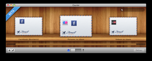 Hlavní funkcí Courier je posílání stejného souboru na více míst najednou, můžete tak například jeden soubor posílat ve stejnou dobu na Facebook a Flicker. Dnes v den vypuštění ostré verze programu bude poskytovat podporu pro Facebook, Flickr, YouTube, Ember, Amazon S3, and Vimeo, další služby budou dostupné brzy. Navíc kluci z Realmac Software nechali otevřené plug-in API, takže vývojáři třetích stran mohou dělat vlastní pluginy. Pokud máte pro jednu službu více účtů, můžete si nastavit přístupy tak, aby se zaměřili na konkrétní účty. Můžete tedy například na Facebooku posílat soubory přímo na zeď fan stránky Letem světem Applem, a nebo pouze na váš osobní profil. Na počet jednotlivých přístupů neexistuje žádný limit, můžete si nastavit tisíce jednotlivých přístupových bodů, neboli obálek, jak autoři pojmenovali přístupy.