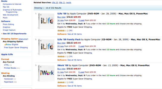 Apple iLife 09 (poslední verze balíku iLife) zlevnil na internetovém obchodě Amazon.com o v průměru 50%! iLife 09 zlevnil z ceny 79$ na částku 39,99$, verze Family Pack pak zlevnila z částky 99,99$ na 45,44$ To je jasný náznak a znamení toho, že Apple již brzy vydá svůj dlouho očekávaný balíček iLife 11!