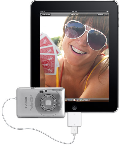 Apple iPad není vybaven standardním USB konektorem, nýbrž pro Apple standardním Dock 30pin konektorem, ten však standarně foťáky a další příslušenství nemají, proto, abyste mohli přenášet fotografie do iPadu, přináší Apple příslušenství pod názvem iPad Camera Connection Kit, pojďme se podívat jaké výhody a nevýhody přináší uživatelům fotoaparátů a iPadů.