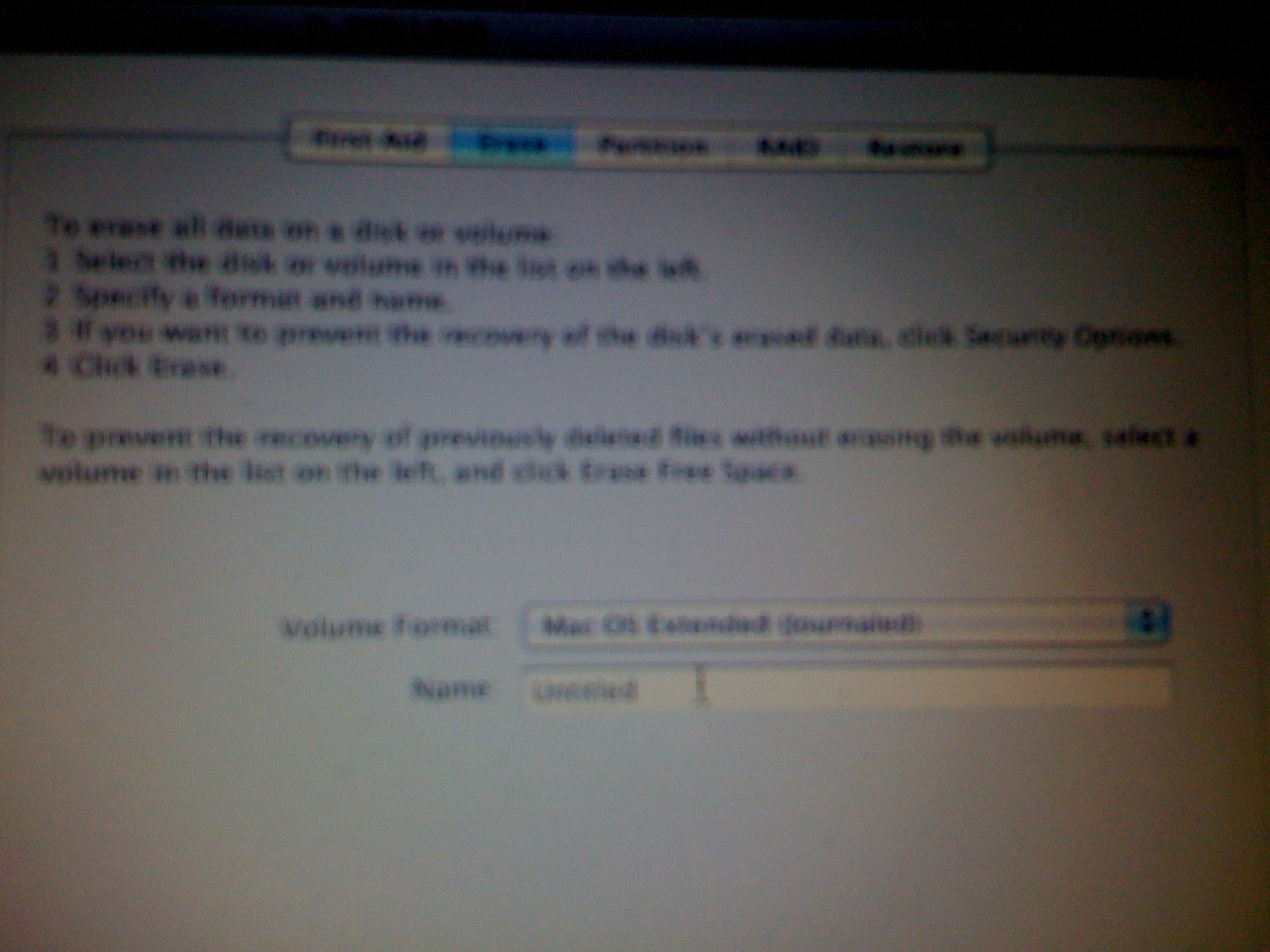 Vyberte možnost Erase, naformátujte disk na souborový systém Mac OS extended journaled