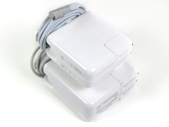 Napájecí adaptér je vzhledově stejný jako u předchozího modelu, ovšem je o zlomek menší. Tlačítko pro zapínání MacBook Air je umístěno v řadě funkčních kláves F1 – F12, vedle klávesy F12.
