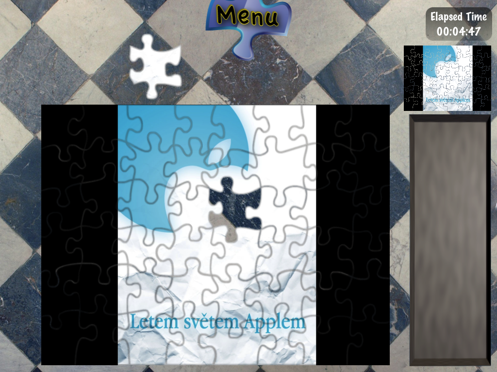 Vždy byl problém buď v malém displeji nebo v samotném ovládání malých kousků. Na iPadu je to ale úplně o něčem jiném. Výhodou je jak rozměrný displej, tak hlavně možnost ovládat dílky prstem. Díky automatickému natočení a obracení dílků vám navíc odpadají počáteční problémy se skládáním. Jako užitečnou pomůcku u složitějších obrázků můžete použít náhled na celé složené puzzle. Obrázků na skládání máte celou řadu, přesně řečeno čtyřicet, a nutno podotknout, že je radost je skládat.