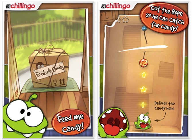 Pro to, abyste si udělali obrázek na hru, to bohatě stačí. Zezačátku každého kola je bonbon přivázaný na provaz, který prstem přeříznete a bonbon se uvolní. Cílem hry je dostat bonbon k žabce a přitom posbírat hvězdičky. Zní to jednoduše, ale ve hře jsou různé překážky. Pro dokončení levelu stačí kuličku dostat žabce do pusy, v každém levelu jsou však 3 hvězdičky a s každou, kterou seberete, se vám zvýší skore. První změna od řezání provazů je bublina, no níž když dostanete bonbon, začne stoupat. Mezi jiné patří například ostnaté dráty nebo elektrický proud, kterým se musíte vyhýbat.