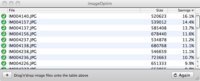 ImageOtim jednoduše vezme vaše obrázky ve formátu PNG, JPEG nebo GIF a najde nejlepší možnou kompresi parametrů s tím, že navíc odstraní zbytečné komentáře a nevyužívané barevné profily. Díky tomu je možné zmenšit fotku až o 90%. Všechny naše obrázky na serveru Letem světem Applem prošly ImageOptim a podařilo se nám snížit velikost všech souborů z 892MB na necelých 600MB, což již při načítání webových stránek jistě poznáte. Dále pak ImageOtim poskytuje GUI pro další nejrůznější optimalizační nástroje: AdvPNG z AdvanceCOMP, OptiPNG, PngCrush, JpegOptim, Gifsicle a volitelně PNGOUT.