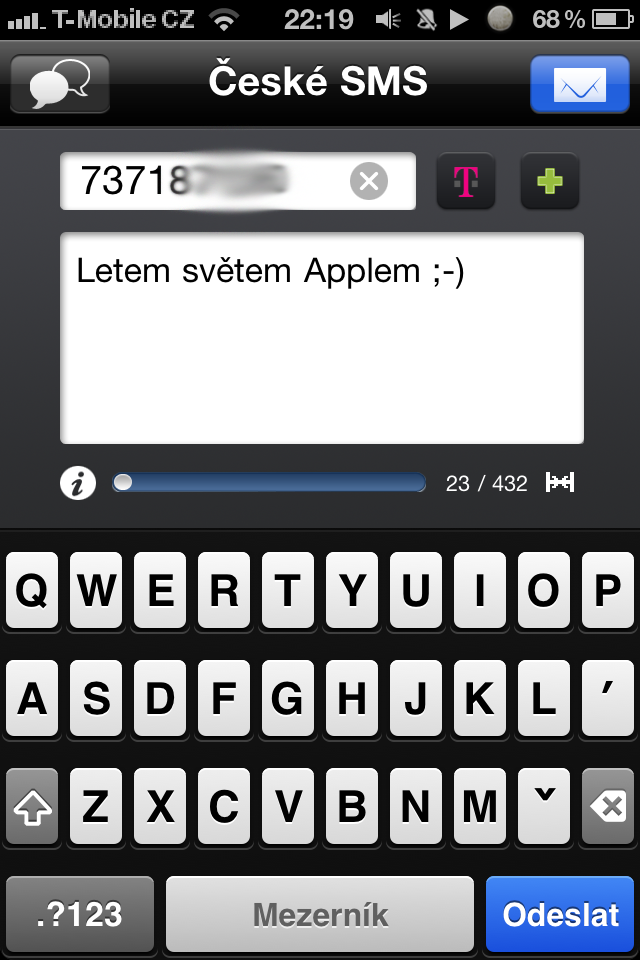 Rádi odesíláte SMS přes brány českých operátoru z počítače? Nechcete platit za SMS ani na svém iOS (iPhone/iPod Touch/ iPad) miláčkovi? Tak mám jeden tip. Jedná se o app České SMS z App Store. Tak to bylo trochu omáčky a nyní už k recenzi Českých SMS…
