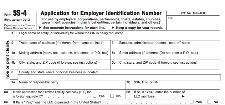 Občané USA do následující kolonky vyplní své číslo pojištění a tím pro ně vše končí. Pokud však chcete generovat zisk na území spojených států a nejste americký občan, musíte požádat o udělení čísla EIN – Employer ID Number, které slouží jako identifikační číslo pro možnost vydělávat peníze na území USA. Jak stojí na samotném webu IRS.gov: „Pokud chceš generovat zisk, potřebuješ EIN!“. Pro získání EIN čísla je potřeba vyplnit formulář označený jako SS-4, což však není taková legrace, jaká by se na první pohled mohla zdát. Na druhé straně formuláře je sice návod, ovšem v té nejvíce úřední angličtině a dobré dvě třetiny bodů jsou zcela volitelné, záleží tedy jen na vás co do nich napíšete, ovšem musí to být správně. Největší legrace však nastává po odeslání formuláře, jakožto neobčan spojených států máte jedinou možnost jak doručit formulář příslušnému úřadu, zafaxovat jej přímo do USA. Na formulář jsou zhruba tři kolonky, kde se vás ptají na číslo faxu, ze kterého byl odeslán. Logicky tedy netrpělivě postáváte čtvrtý den, kdy by již měl být formulář schválen nebo zamítnut, u faxu. Když se ani po čtrnácti dnech na faxu neobjevil, odeslal jsem druhý formulář, asi tři dny na jsem nalezl ve schránce dopis z USA, označený jako EIN-Number, kde se nachází vaše identifikační číslo. Dopis není posílán doporučeně, kdokoliv kdo by jej získal, může začít podnikat na vaše EIN, což mě nemile překvapilo, nicméně EIN jsem po zhruba třech týdnech získal. Za další tři dny přišel pochopitelně další dopis, s dalším rozdílným EIN. Američané nijak neřeší, že jedno číslo již máte přiděleno a automaticky přidělují další.