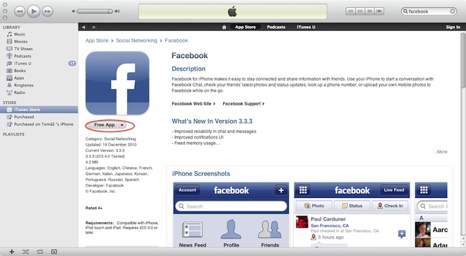 Nájdeme si Free alebo Lite aplikáciu, napr. Facebook (odkaz nájdete tu pre iTunes Store SR a tu pre iTunes Store ČR).