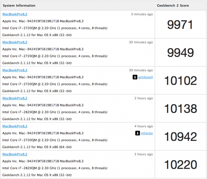 MacBook Pro 2011 – Geekbench test