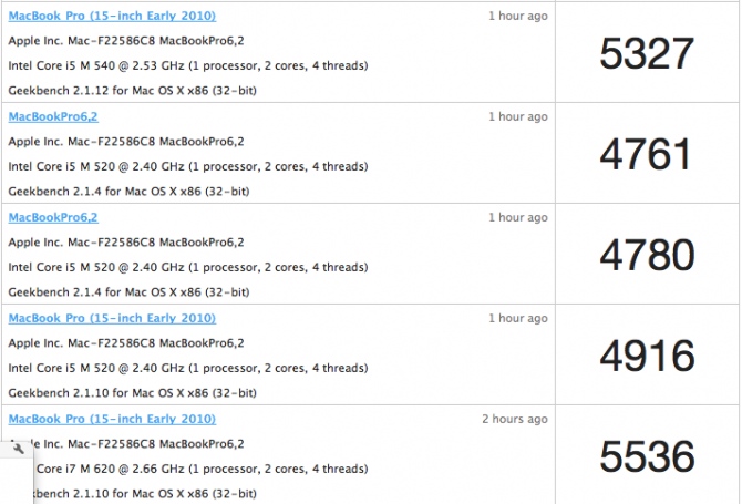 MacBook Pro 2010 – Geekbench test