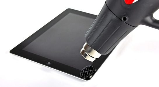 - Do těla iPadu 2 se nedostaneme jinak než pomocí horkovzdušné pistole, jelikož iPad 2 je stejně jako jeho předchůdce pevně slepen do jednoho celku, nikoliv jako u iPhonu kde se pomocí odšroubování dvou malých šroubků dostaneme rovnou do těla přístroje.