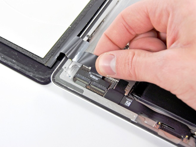 Baterie je přilepena velmi pevně na zadní kryt, kvůli výměně musíte rozebrat skoro celý iPad