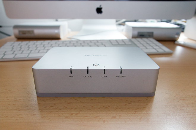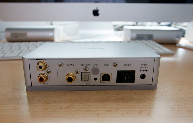Práve dizajn je jednou z vecí, prečo som sa rozhodol rDAC zrecenzovať, vizuálne totiž veľmi dobre zapadá do portfólia produktov Apple. Jedná sa o malú, hliníkovu krabičku, jemne pripomínajúcu Mac mini, s gumenným podstavcom, jedným tlačítkom na prepínanie vstupov a 4mi signalizačnými diodami. Na zadnom paneli potom nájdeme 3 digitálne vstupy (USB, optiku a koaxiál), jeden analógový výstup a sieťový vypínač. Signál z vášho Macu môžete do rDAC posielať aj bezdrôtovo, no je nutné dokúpiť Arcam rWave, ktorý po zapojení do USB rozhrania na vašom Macu bude posielať signál do samotného prevodníku. rWave som bohužiaľ k dispozícii nemal, takže sa pozrieme len na možnosti káblového prepojenia. Spomínané signalizačné diódy svieta na zeleno a to v prípade, že daný vstup prijíma signál, alebo na červeno, pokiaľ žiaden signál k dispozícii nie je. Svetlo je jemné a nijak neruší, modré podsvietenie môjho zosilovaču je oveľa výraznejšie.