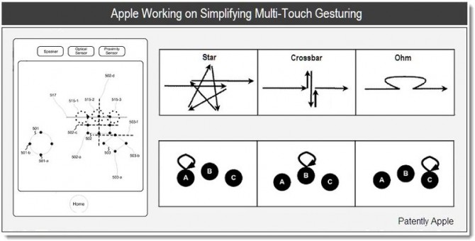 Apple si podle patentového úřadu patentoval hned několik multidotekových gest. Nejprve se mu konečně podařilo získat výhradní patent na gesta, která již u svých iOS zařízení používá od první generace iPhonu. Poté si Apple patentoval několik dalších gest, pro která v současné době využití nemá, ale s přibývajícími funkcemi operačního systému iOS pro ně možná využití najde. Několik z těchto nových gest jste si již mohli vyzkoušet, pokud vlastníte tablet iPad a máte zaplacenou vývojářskou licenci. V jedné s beta verzí nového iOS právě pro iPad byla možnost nová gesta zapnout a vyzkoušet si tak ovládání přístroje bez použití home buttonu. V následující beta verzi a ostatně i ve finální verzi iOS byla tato gesta odstraněna, nicméně stále si je můžete aktivovat přes program Xcode 4.