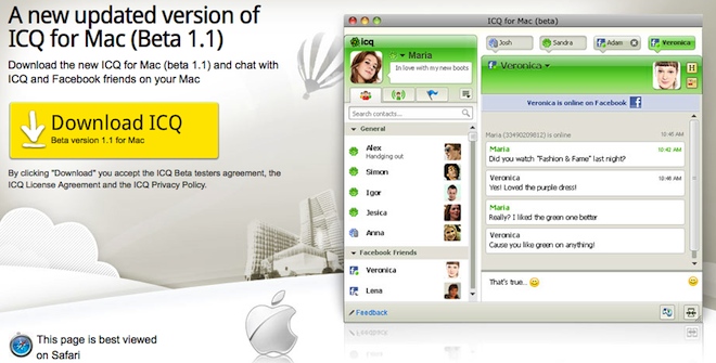 Internetová komunikácia je čoraz rozšírenejšia, či sa jedná už o komunikáciu cez populárny Facebook alebo Skype. Populárne je v dnešnej dobe aj ICQ, ale s jeho podporou na Mac OS X to bolo doteraz biedne. Zdá sa, že časy sa zmenili a je dostupná prvá použiteľná verzia, aj keď len beta.