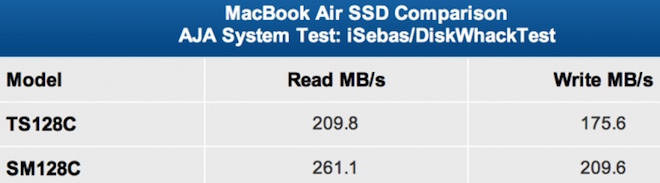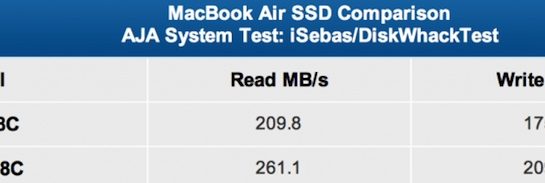 Apple standardně dodával v MacBook Air paměti od společnosti Toshiba, nyní je však vyměnil a MacBooky Air, které právě opouštějí výrobní linky již obsahují rychlejší paměti od společnosti Samsung. Je těžké určit přesné datum, kdy Apple provedl tuto změnu, ovšem je jisté že již měsíc staré MacBook Air obsahují SSD disky od rychlejšího Samsungu. Pokud si tedy nyní zakoupíte nový MacBook Air, měl by s největší pravděpodobností již obsahovat rychlejší verzi SSD disku od společnosti Samsung. Ověřit si to můžete po jeho spuštění v System Profiler, kde pod položkou disku naleznete přesný název SSD disku ve vašem MacBooku Air.