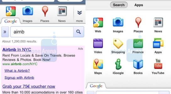 Někteří z vás mohli na svých iPhonech zaznamenat změnu vzhledu vyhledávače Google. Tato změna se týká nových velkých ikon, namísto textových linků v horní části stránky. Tyto ikony jsou viditelné při vyhledávání výrazu a fungují v podstatě stejně jako textové linky. Ikony zastupují odkazy na vyhledávání obrázků, míst a novinek. Kliknutím na ikonu více zobrazíte další nové ikony, které vám poskytnou rychlý přístup k Youtube, Gmailu, mapám a dalším oblíbeným službám Googlu. Celý nový vzhled mobilního iOS Googlu se nyní svým vzhledem podobá nativní Google aplikaci, kterou je možno zdarma stáhnout z App Storu.