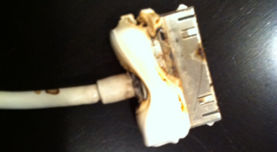 Další příběh se týká vývojáře s iPhone 4, kterému se pro změnu během nabíjení iPhone 4 vznítil jeho nabíjecí kabel Apple Sync Cable. Kabel začal hořet během nabíjení přístroje, vývojář však naštěstí okamžitě vytáhl iPhone 4 z kabelu, ten tak nedošel k žádné újmě. Další vývojáři hlásí problém s přehříváním svých přístrojů. Respektovaný server MobileCrunch hlásí množství zpráv od svých čtenářů, kteří se potýkají s přehříváním přístrojů s iOS 5. Patrně se jedná o problém s elektroinstalací který se s iOS 5 může projevit.