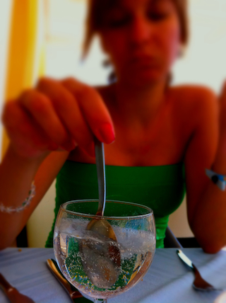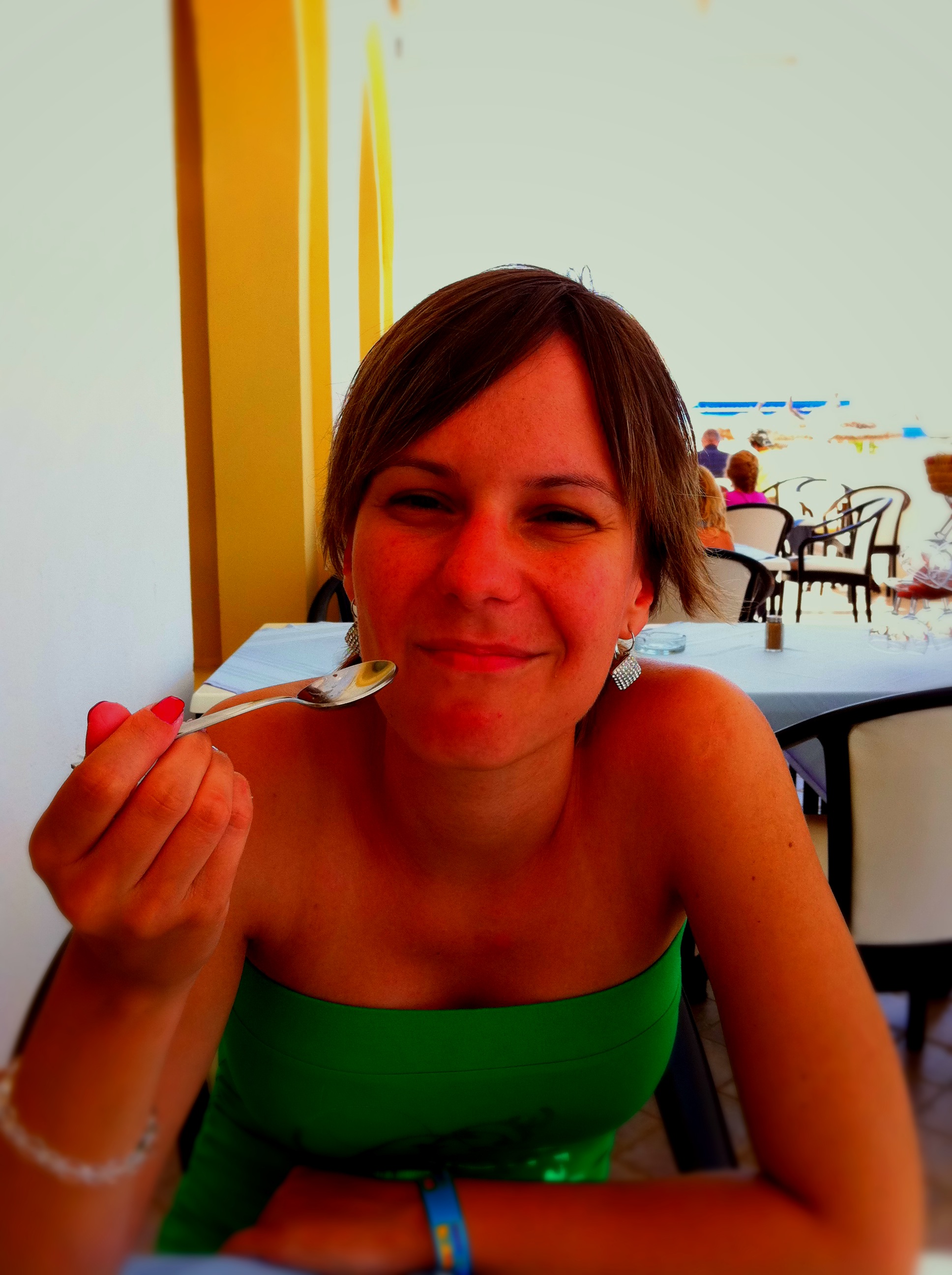 woman eating dessert