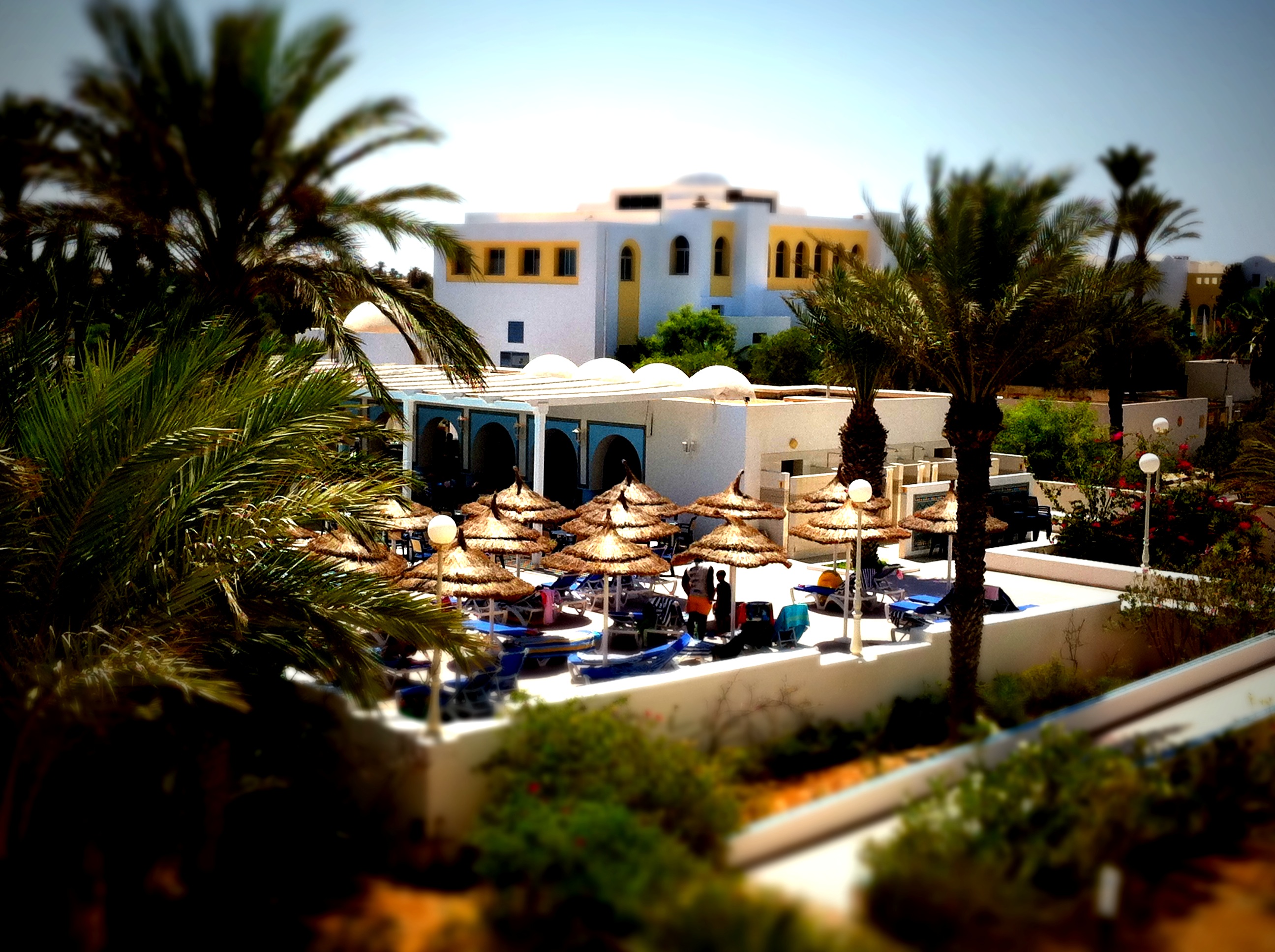 hotel poolside palm trees