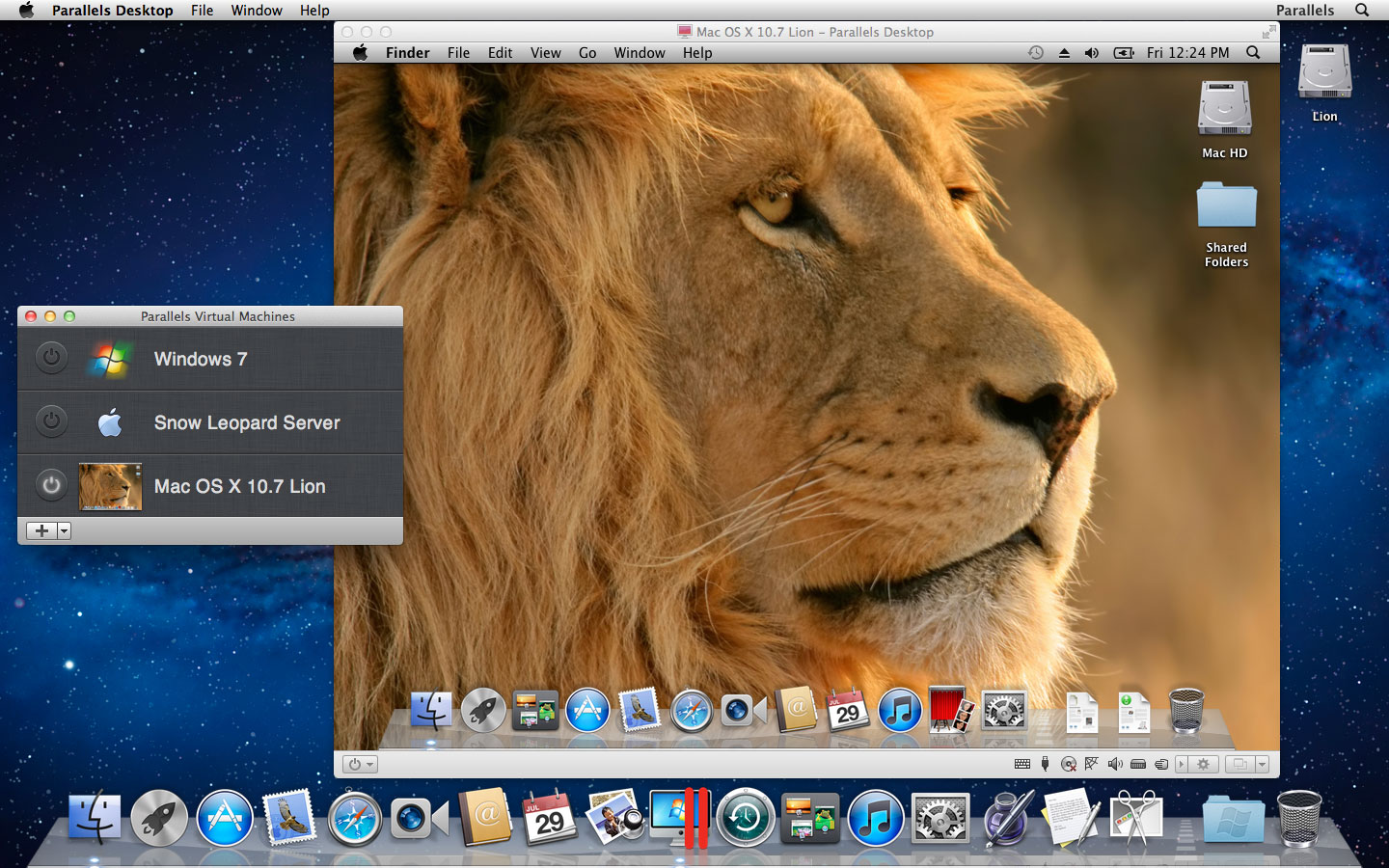 Společnost Parallels dnes oznámila novou verzi svého virtualizačního software Parallels Desktop 7. Aplikace umožňuje spouštět operační systém Microsoft Windows na počítačích Apple Macintosh s operačním systémem Mac OS X. Mezi největší novinky samozřejmě patří plná kompatibilita s Mac OS X 10.7 Lion. Parallels využili také upravených licenčních podmínek, které Apple poskytuje s Mac OS X 10.7 Lion a umožňuje tento software virtualizovat a to až dvakrát na jednom počítači. Nově tedy můžete spustit Mac OS X 10.7 Lion, případně Mac OS X 10.6.8 Snow Leopard a Parallels Desktop 7, ve kterých následně spustíte jednu nebo dvě kopie virtualizovaného operačního systému Mac OS X 10.7 Lion.