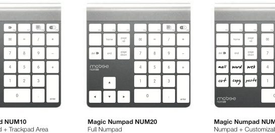 Již při zahájení prodeje Apple Magic Trackpad se začaly na diskusních fórech objevovat názory, že by se dal Trackpad využít jako numerická klávesnice. S prvním použitelným řešením však přichází až společnost Mobee, která dnes oficiálně představila svůj nejnovější produkt s názvem The Magic Numpad. Jedná se o kit, díky kterému lze polepit Magic Trackpad nálepkou s vyznačenými klávesami a díky speciálnímu software můžete klávesy začít okamžitě používat. Poté co nalepíte jednu z trojice samolepek na Magic Trackpad, stačí v aplikaci dodávané Mobee zvolit jakou nálepku jste použili. Nyní již stačí zapnout/vypnout použití kláves na Trackpadu a podle toho používat trackpad nebo „klávesnici“.