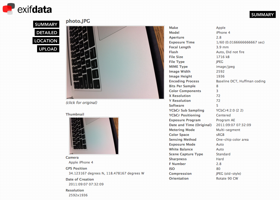 EXIF údaje iPhone 4