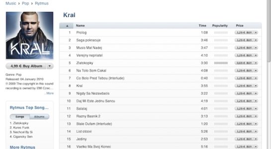 - Rytmus – Král stojí při nákupu jednotlivých písniček 21,33€
