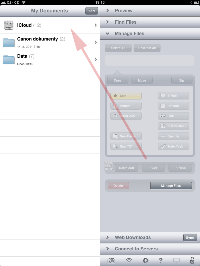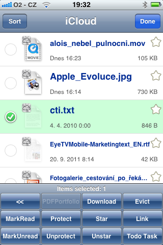 Ahoj, prosím prosím může někdo napsat návod, jak dostanu soubory na iCloud přes GoodReader? Mám aktuální verzi GoodReader i iOS 5, ale v goodreader-manage files nemám vůbec buttons: Download,evict a publish… Help me … Díky moc