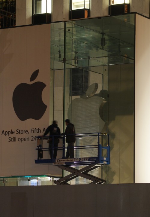 Apple dnes slavnostně otevře svůj nejslavnější obchod Apple Store, tedy ten, který stojí na 5th Avenue. Obchod bude otevřen dnes v 10:00 US času a zřejmě se bude jednat o slavnostní zahájení prodeje s odhalením nové skleněné kostky, která je pro obchod typická. Apple Store je nyní zahalen do bílé fólie, díky které není vidět nový vzhled, skládající se z 15 tabulí skla, na místo 90 jak tomu bylo před rekonstrukcí.