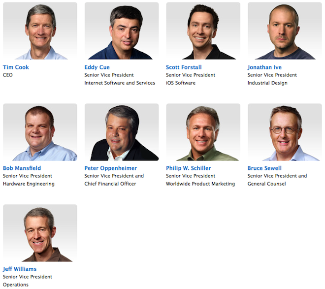 Podobně motivovaný byl i nový CEO společnosti Apple Tim Cook, který dostal po jmenování do funkce šéfa Applu odměnu v podobě akcií v hodnotě 400 milionů dolarů. Odměnu dostanou konkrétně: Scott Forstall, Senior Vice President, iOS Software, Bob Mansfield, Senior Vice President, Hardware Engineering, Peter Oppenheimer, Senior Vice President and CFO, Phil Schiller, Senior Vice President, Worldwide Product Marketing, Bruce Sewell, Senior Vice President and General Counsel a nakonec také Jeff Williams, Senior Vice President, Operations.