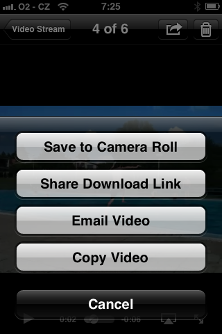 Když tedy nyní něco nahrajeme za pomoci této aplikace kamerou třeba na iPhone, můžeme vzápětí po přenosu na iCloud server sledovat toto video v našem iPadu či počítači s Lionem (za pomoci tipu na tomto serveru). Tato aplikace nám dovolí poslat na iCloud Video Stream i naše starší nahrávky v přístroji, či upravená videa třeba aplikací iMovie pro iOS.