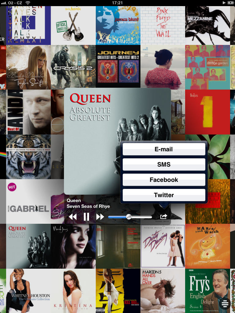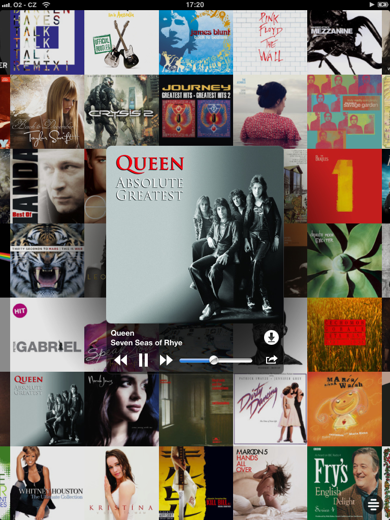 Taháním prstu po obrazovce ve všech směrech se generují nové obaly alb, což vypadá hlavně na velké ploše iPadu velice efektně. Zobrazované skladby můžete omezit podmínkami (např. žánr hudby, textový řetězec). Též je možné zobrazovat pouze to, co máte ve vlastní knihovně. Když rozšíříte možnost volby o ukázky skladeb na iTunes Store, zobrazí se při přehrávání tlačítko pro odskok na případný nákup hudby. Aplikaci získáte zadarmo a je plně kompatibilní s iOS-5 (integrace Twitteru, podpora iMessages, AirPlay). Mně osobně tento program přijde hodně efektní stejně jako skupina Slade, jejíž starý hit má ve svém názvu obsažen právě název této aplikace. Následuje galerie obrázků z prostředí iPadu. Na konci článku je odkaz na externí video ze serveru YouTube, které vám ukáže základy práce s programem v praxi.