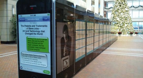 Kancelář US Patent and Trademark minulý týden otevřela novou expozici k úctě památky Steva Jobse. Expozice je k vidění v Alexandrii ve Virginii, kde se nachází v atriu budovy. Výstava probíhá na 30 obřích iPhonech, z nichž většina zobrazuje více jak 300 patentů, které vlastnil Steve Jobs. Zbytek iPhonů zobrazuje fotografie a stručný popis exponátů, které můžete vidět.