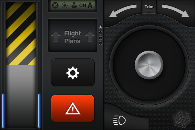 Vrtulníček musí pochopitelně od jeho kolegů s běžným ovládáním něco lišit. Odlišností v tomto případě je právě aplikace HELO TC, která dokáže kromě klasického ovládání, kdy se zobrazí joystick, trimové tlačítka a také přidávání plynu, mnohem více. Samozřejmě můžete pro ovládání využít akcelometr a gyroskop ve vašem iOS zařízení. Ovládání za pomocí naklánění přístroje bude možná někomu vyhovovat více, než ovládání pomocí dotykové obrazovky. V každém případě se tak ještě více vžijete do role pilota. Aplikace umožňuje také vypnout a zapnout osvětlení helikoptéry, což je velice efektní záležitost. Má také takzvané nouzové tlačítko, které okamžitě sníží výkon motoru vrtulníku, stabilizuje let a co nejrychleji jej dostane bezpečně k zemi, to se hodí především v situacích, kdy víte že se blíží překážka, které se již nedokážete vyhnout. Zajímavostí je také možnost nahrát si trojici letových plánů. Jednoduše zapnete nehrávání a aplikace zaznamenává vše, co děláte. Po skončení nahrávání se letový plán uloží a vy můžete například obletět místnost bez jediného dotyku iPhone. Stačí jen dát vrtulníček na stejné místo, jako při nahrávání záznamu.
