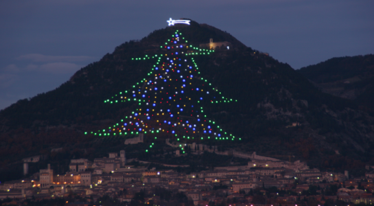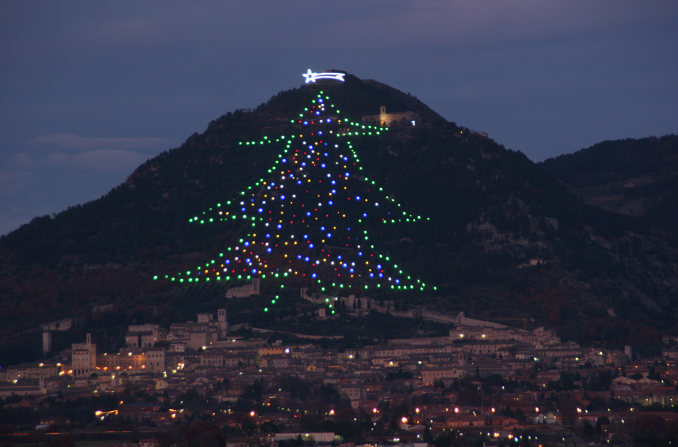 Strom Gubbio navštěvují každý rok tisíce lidí. Poprvé byl osvětlen v roce 1981. Nyní zůstane svítit až do 6. ledna 2012 do slavnosti Zjevení Páně. Dosahuje výšky 650 metrů a šířky 350 metrů. Zdobí ho více jak 3000 barevných světelných prvků a na vrcholu má hvězdu s plochou 1000 metrů čtverečných s více jak 200 světly. K propojení napájecí kabeláže o délce 8500 metrů je použito 1350 zásuvek. Instalace trvala letos 1900 pracovních člověkohodin. Celkový příkon elektroinstalace čítá 35 kWh.