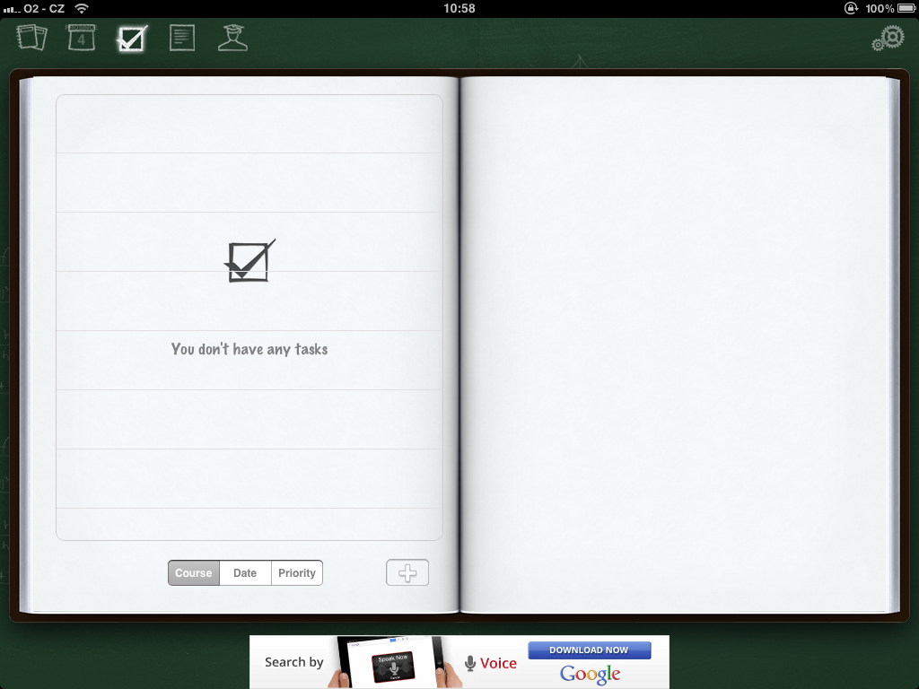 Hned na začátku si můžete vytvořit „sešit“, kam si budete zapisovat vše co potřebujete. Těch můžete mít hned několik, rozřazených například podle jmen škol, studujete-li jich vícero, nebo si je pojmenujte podle vašich představ. Každý sešit má svoje datum, od kdy do kdy je aktuální. Ještě podrobněji si ho potom můžete roztřídit podle předmětů, kde má pro větší přehlednost každý svojí barvu.