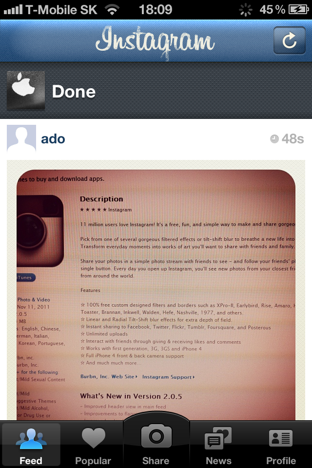 Pred pár dňami Apple oficiálne predstavil Top 10 aplikácii z rôznych kategórii pre iOS, za rok 2011. Aplikáciou roka pre iPhone sa stal Instagram, ktorý dokáže upravovať fotografie a následne zdieľať na najznámejších sociálnych sieťach. Keďže ma zaujímalo prečo dosiahol takýto úspech rozhodol som sa ho otestovať.