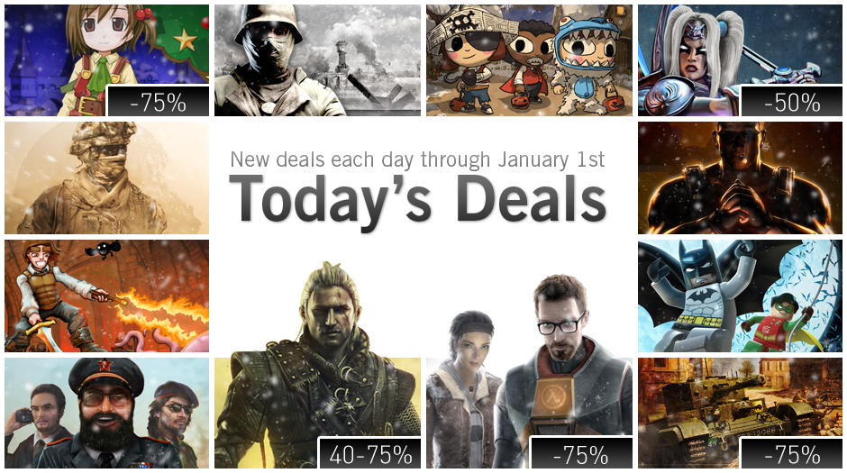 Vánoce jsou tradičně časem kdy nejen ježíšek, ale i vývojáři a prodejci software rozdávají dárky. Steam nabízí Vánoční slevu na jednotlivé hry ve výšce až 75%. Pokud však zakoupíte kompletní balík her z jedné série nebo od jednoho vývojářského studia, máte možnost získat slevu až 90%. Steam bude až do 1. 1. 2012 přinášet každý den slevu na nové hry.