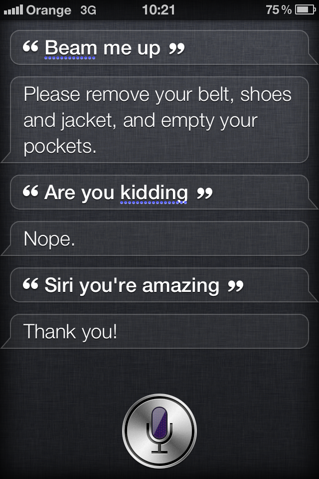 SIRI, hlasová asistentka, ktorá za vás robí robotu, pomáha vám pri vyhľadávaní, či značí do kalendára rôzne udalosti-tak ju pozná väčšina z vás. Teraz vám predstavím jej druhú tvár-povedal by som “ľudskejšiu” ale hlavne zábavnejšiu! Niektoré odpovede su naozaj vtipné a dokážu človeka veľmi pobaviť. Vybral som teda 10 najzaujímavejších a najvtipnejších ukážok.