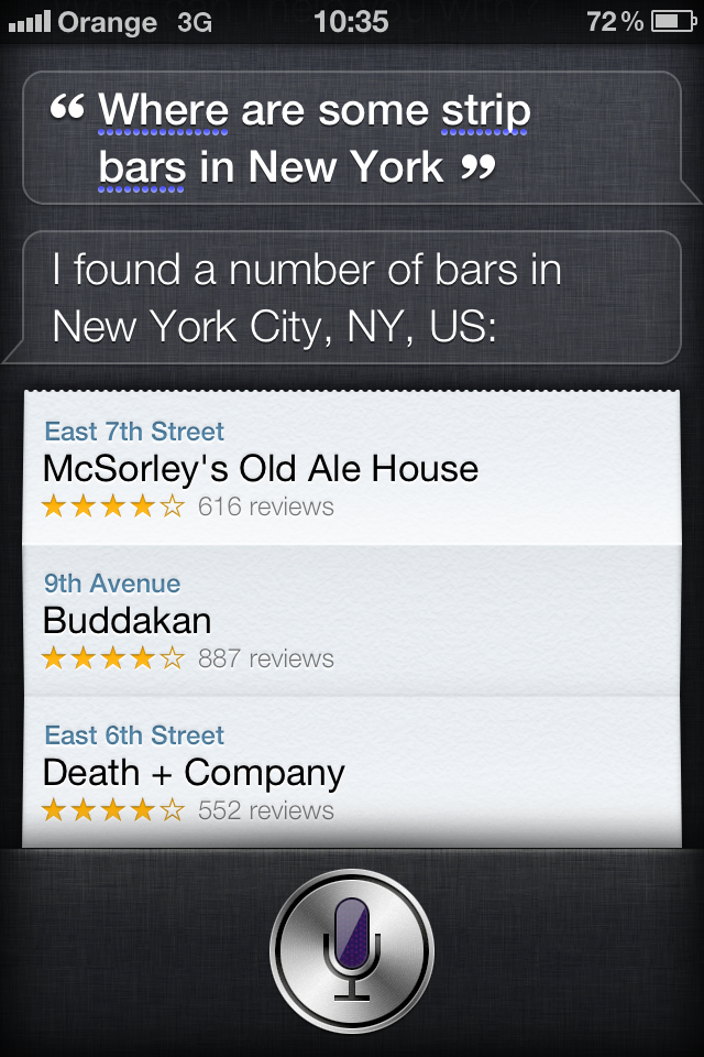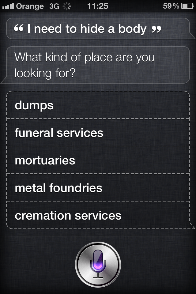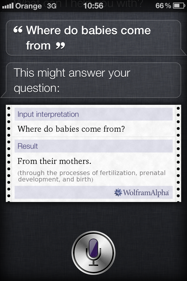 Odpoveď (Siri): No, perharps not. – Nie, tak teda nie.