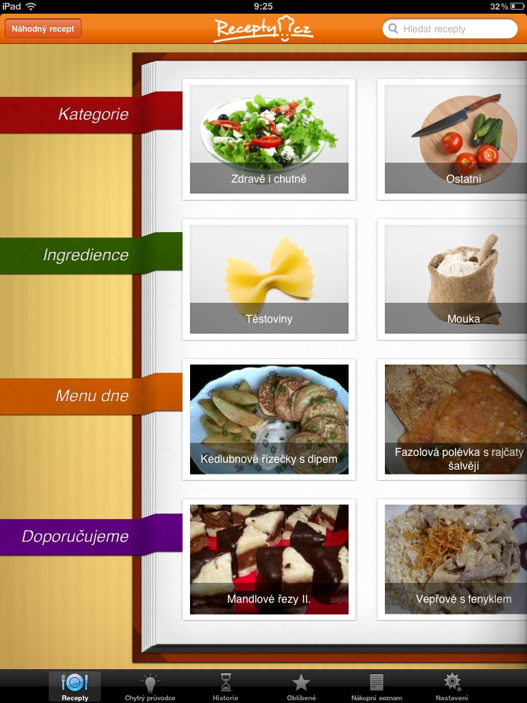 Tisková zpráva: Recepty.cz pro iPad přinášejí zdarma kuchařku s více než 22 tisíci recepty roztříděnými podle surovin, příležitostí, náročnosti přípravy a dalších kritérii. U receptů najdete fotografie i videa. Aplikace přijde vhod všem, kterým při vaření nebo tvorbě nákupních seznamů dochází inspirace. Dá se propojit s účtem na webu Recepty.cz a nákupní seznamy stahovat i do aplikace pro iPhone, se kterým se nakupuje přeci jen pohodlněji. I tato aplikace je zdarma. Nákupní seznamy lze případně poslat i prostřednictvím SMS.