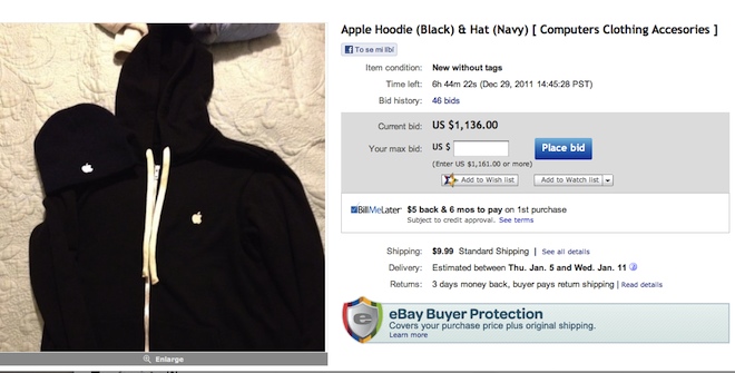 Jak jsme vás informovali, obdrželi zaměstnanci společnosti Apple před nástupem na Vánoční dovolenou jako odměnu od svého zaměstnavatele mikiny s logem Apple Inc. Již při psaní článku jsem uvedl, že se z mikiny stane zajímavý artikl na aukčních portálech, to jsem však ještě netušil, o jak cenný předmět se bude jednat.
