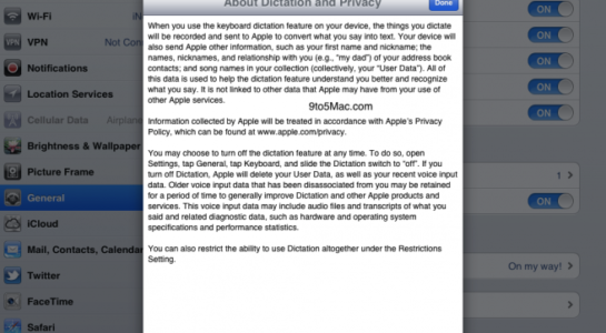 Na serveri 9to5mac, sa objavila informácia, že nový iOS 5.1 vo verzii beta 3, okrem spomínanej funkcie umožňujúcej vypnutie 3G na iPhone 4S, obsahuje v právnych upozorneniach na iPade, zmienku o diktovaní prostredníctvom Siri. V súčasnosti, je ťažké potvrdiť, či Apple plánuje túto službu naozaj sprístupniť a či nejde len o chybu, ktorá sa v beta verziách často vyskytuje.